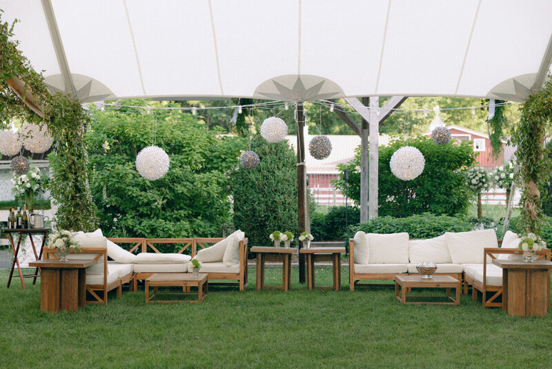 Tableware, Tables, Lounge Seating, Glassware: Tablescapes Event Rentals